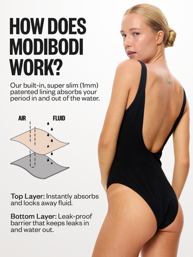 Yes. Modibodi’s full coverage one piece swimsuits absorb up to 10ml and are perfect for light to moderate flow, no tampon needed.