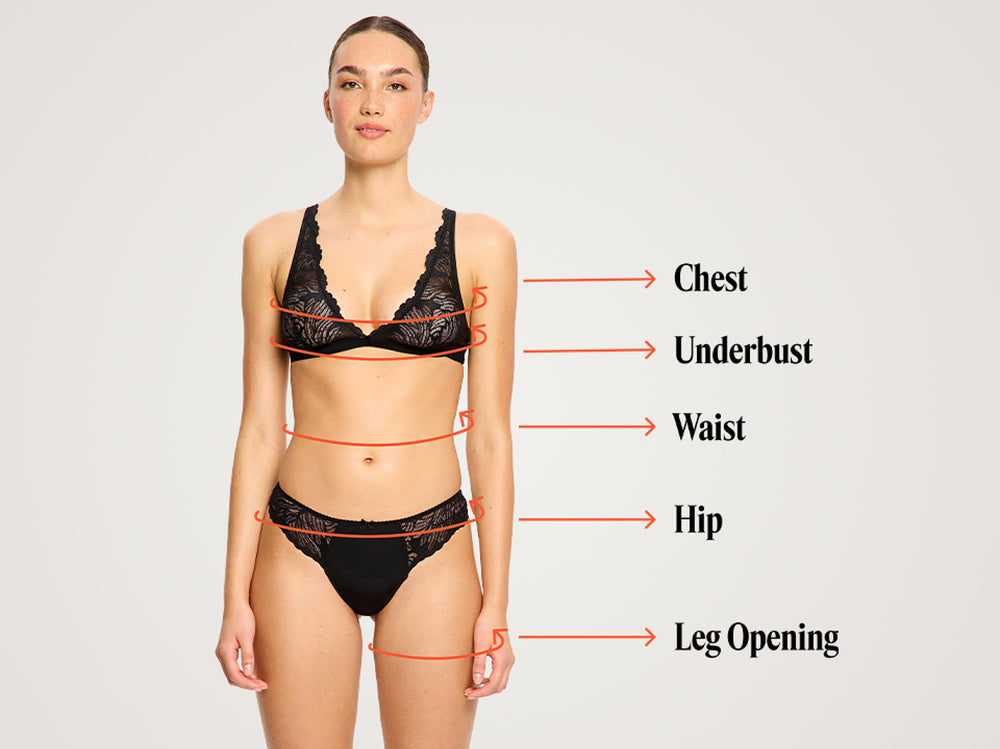 Wenn es um auslaufsichere Unterwäsche und Bademode geht, ist es super wichtig, die Passform zu finden, die perfekt zu Ihnen passt. Sie kennen Ihre Maße nicht? Kein Problem. Gehen Sie einfach auf unsere Seite „So messen Sie sich selbst“ und gehen Sie von dort aus weiter.