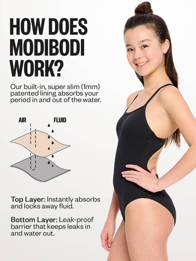 Looking for period swimwear for teens that actually works? Our teen swimsuits for periods is engineered for real-life situations, no leaks, no worries. Explore our Teen Collection, check out Teen Period Underwear, or browse Teen Activewear for cycle-ready style. Whether you need period swimwear for teens for swimming lessons, holidays, or everyday freedom, Modibodi has your flow covered.