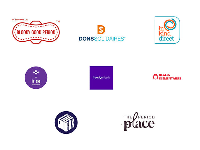 - In the UK: Bloody Good Period, Freedom4Girls and IRISE International, In Kind Direct.